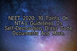 National Testing Agency (NTA) has a lengthy list of instructions for the over 15 lakh aspirants. The NEET was already conducted following stringent rules, including a special NEET dress code, the type of water bottle and what to carry to the exam centre. The outbreak of COVID-19 has further tightened the restrictions. The NEET exam day guidelines now includes candidates bringing a duly-filled "self-declaration form" on their health status. The NEET UG for admission to medical colleges is scheduled to be held between 2 pm and 5 pm across 3,842 centres.